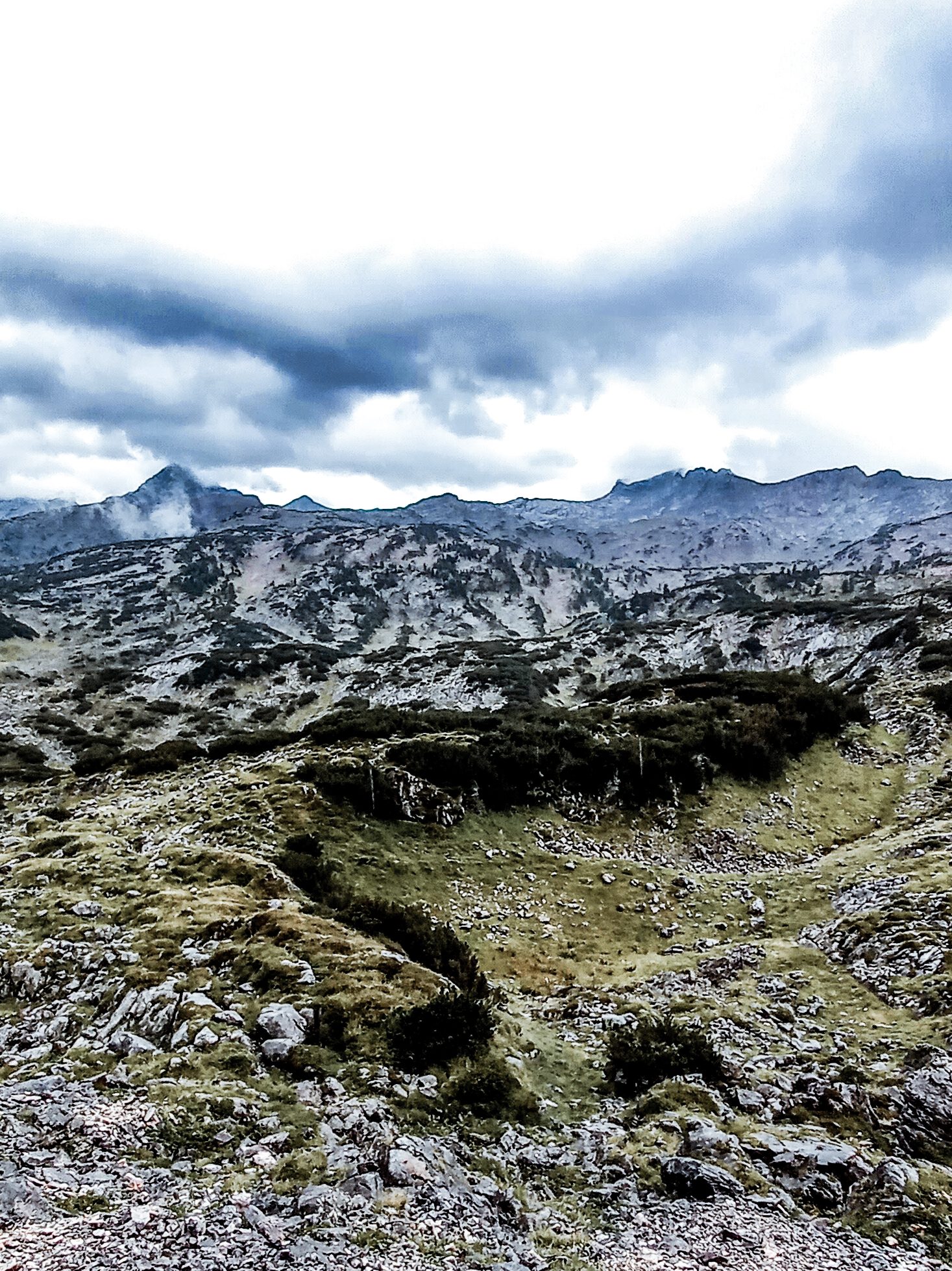 Als wir starten wissen wir noch nicht, dass es der Weg (zumindest für mich) so richtig in sich haben und uns einiges abverlangen wird. Von nassen Socken (eigentlich war zwischendurch wirklich alles nass, aber die Sockensituation ist mir besonders im Gedächtnis geblieben), schmerzenden Füßen, plötzlich verschwundenen Wegen, rutschigen Stufen, bimmelnden Kuh- und Schafglocken, wunderschönen Landschaften, Wärme und Kälte war eigentlich alles dabei. Und wir brauchen eine halbe Ewigkeit, bis wir gegen Abend endlich am Ingolstädter Haus ankommen. Ich glaube, die knapp 10 Stunden sprechen für sich.