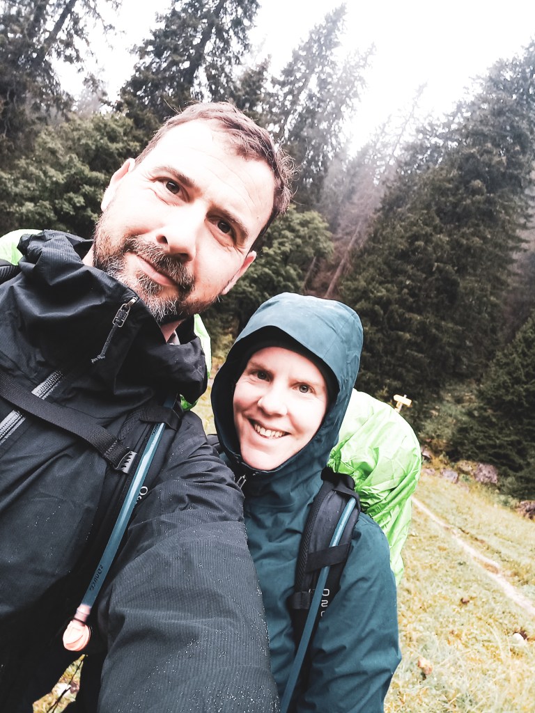 Da wir mittlerweile wissen, dass wir eher zu den langsam wandernden Menschen gehören und heute wieder eine lange Strecke vor uns liegt, sind wir unter den ersten Wander*innen die im Dauerregen starten. Die Anderen wollen warten, bis der Regen aufhört. Was am Ende des Tags leider nur kurzzeitig passieren wird.