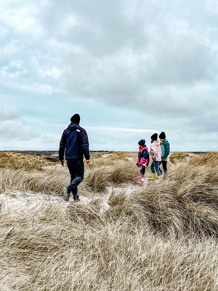 Große Pläne für unsere Urlaubswoche haben wir im Vorfeld bewusst nicht geschmiedet. Der Wetterbericht sieht eher mittelmäßig aus, sodass wir unsere Aktivitäten vor Ort nach Wetterlage planen. So erkunden wir den Ort Bork Havn, gehen am Ringkøbing Fjord joggen, verbringen zwei Nachmittag in den riesigen Dünen bei Hvide Sande, kaufen dort Bonbons, essen jede Menge Fish & Chips, besteigen den Leuchtturm Lynvig Fyr und machen einen kleinen Ausflug in ein Vogelschutzgebiet Tipperne wo wir zwei Holztürme zur Vogelbeobachtung erklimmen und uns an der grandiosen Aussicht erfreuen. Die etwas ruckelige Fahrt durch das Naturschutzgebiet lohnt sich wirklich sehr, denn wir können so viele tolle Vögel am Wegesrand und in den Feldern entdecken und starten ganz spontan eine kleine Entdeckungstour durch die Wiesen (Abbruch wegen Überflutung und nassen Socken) am Turm von Tipperne. Ansonsten verbringen wir an den Regentagen viel Zeit mit Spielen, färben Ostereier, essen viele leckere Sachen, verbringen Zeit mit den Großeltern die ein paar Tage vorbeischauen und lesen. Es ist herrlich erholsam.