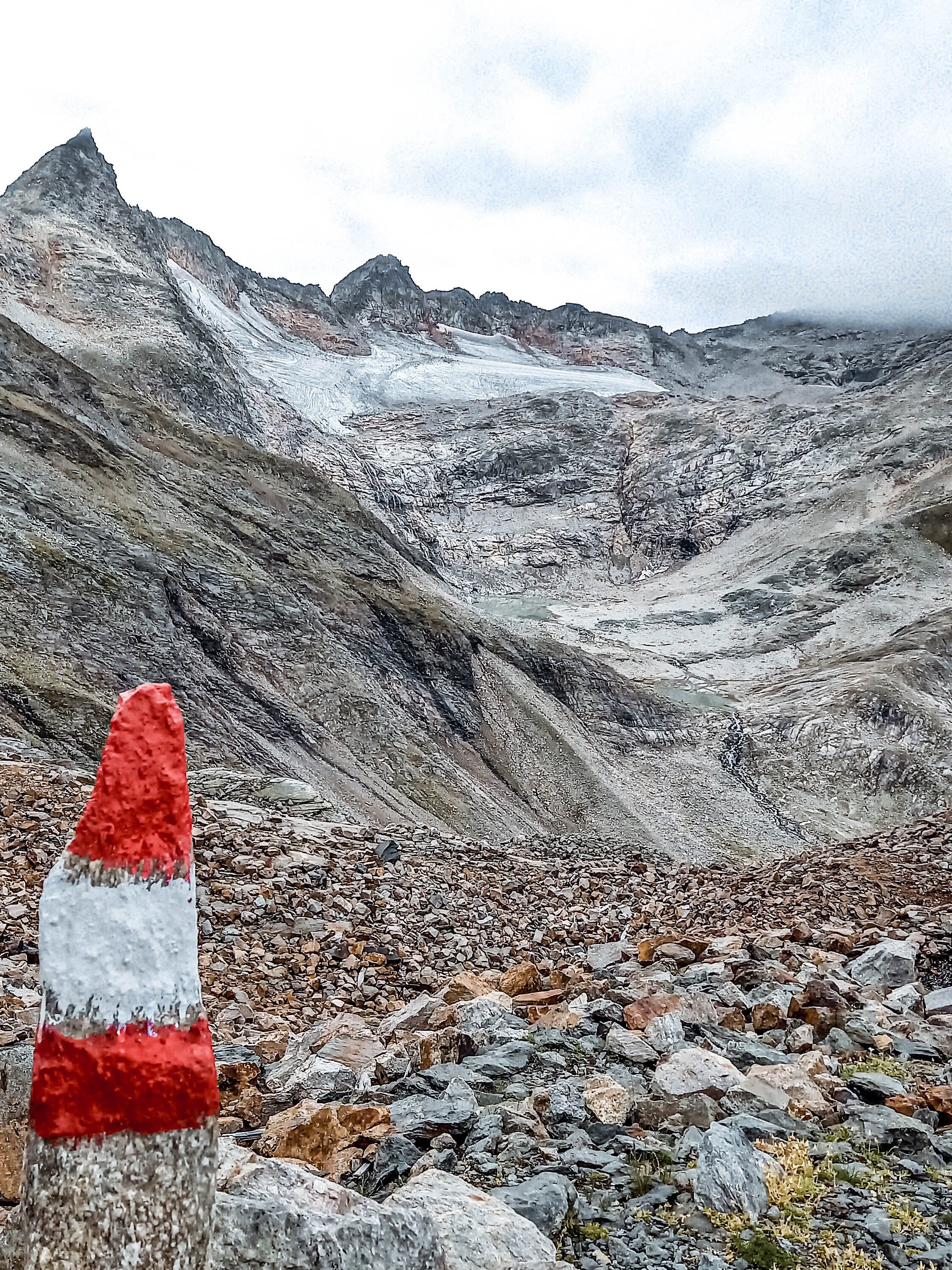 Denn so gut bisher alles gelaufen ist, beginnt nach dem Abstieg von der Saustellscharte irgendwie der nicht so schöne Part der Etappe. Also wir sind heil angekommen, meinen Füßen geht es auch gut, aber wie sich der Weg teilweise gestaltet hat und sich am Ende in die Länge gezogen hat, ist wirklich eine Sache für sich.