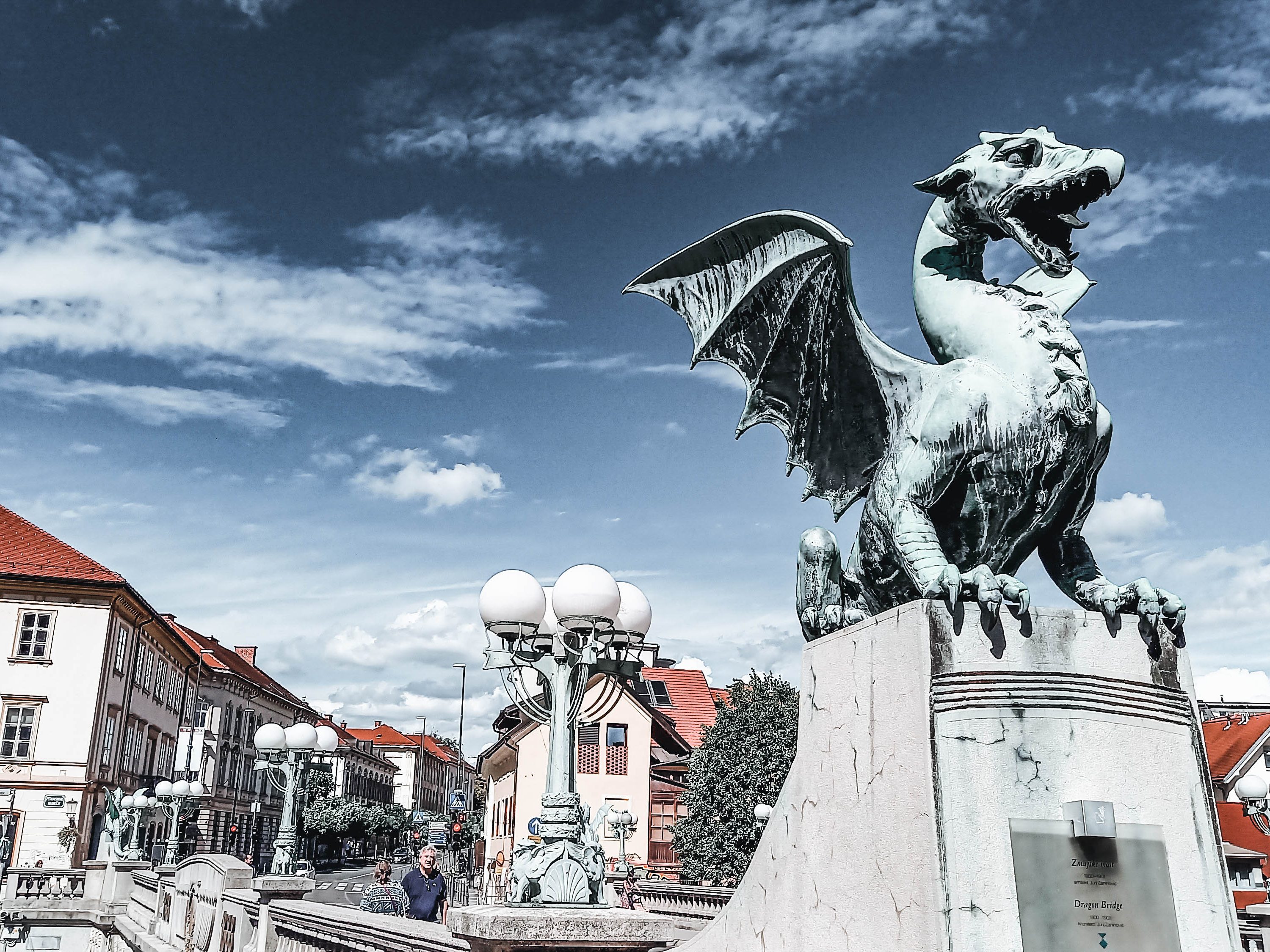 Die Drachenbrücke aus der Jugendstilarchitektur ist ein Wahrzeichen von Ljubljana, eines der bekanntesten Sehenswürdigkeiten und beliebtes Fotomotiv. Die Brücke ist bekannt für die vier Drachenfiguren, die die Brücke bewachen und einfach beeindruckend.