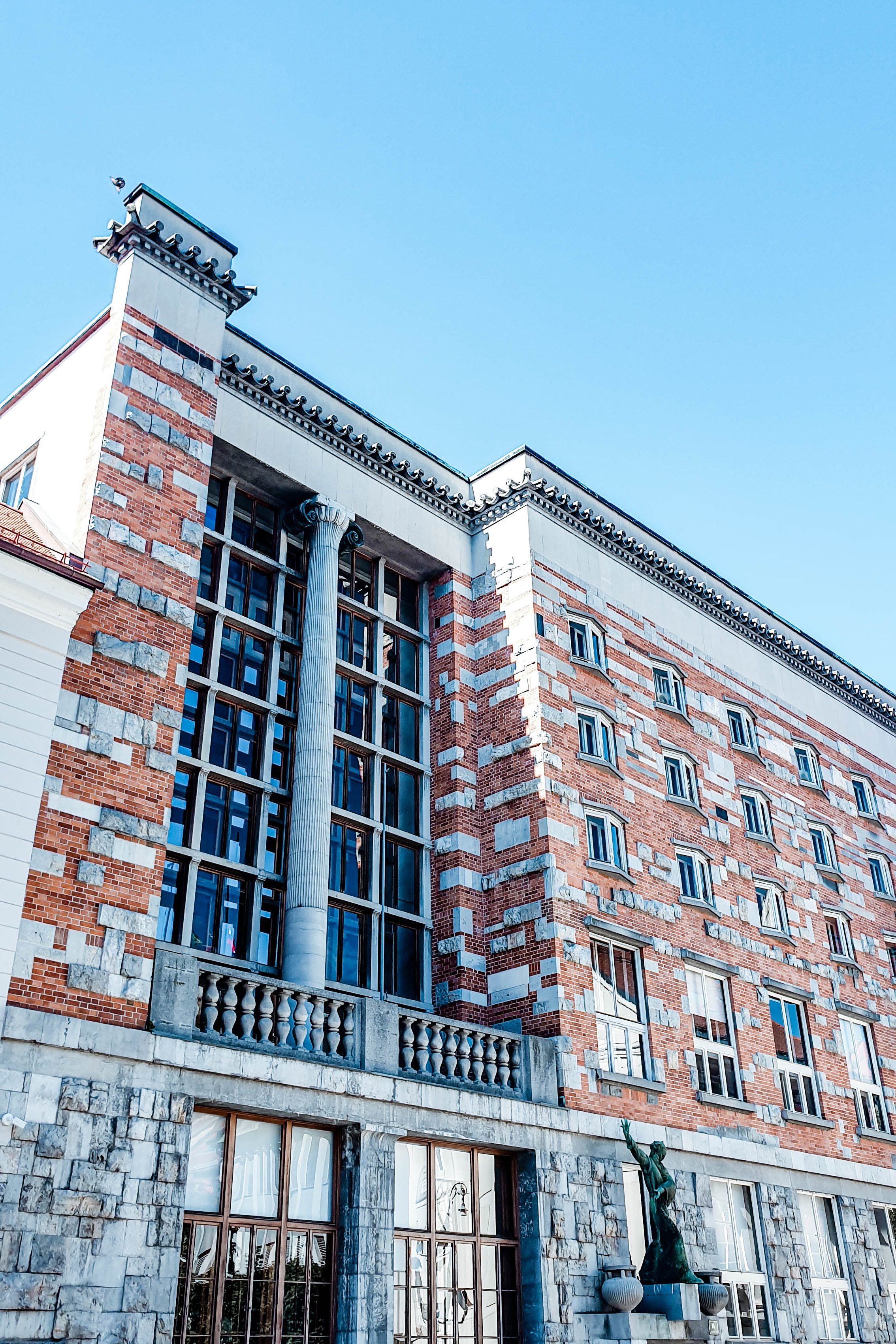 Als das Wetter an einem der Tage nicht mitgespielt hat, haben wir die Regenphase im Slowenisches Museum für Moderne Kunst verbracht. Die Ausstellung war jetzt nicht überragend toll, aber wir hatten eine sehr schöne Zeit in dem Museum und haben am Ende der Ausstellung noch einen Kaffee im Museumscafé getrunken und sind dann trockenen Fußes weiter über den Platz der Republik zurück in Richtung Altstadt geschlendert. Der Platz der Republik ist ein im Jahr 1960 erbauter Platz mit Architektur im Stil der sozialistischen Moderne und markanten Hochhäusern. Außerdem war ich sehr begeistert von der Slowenischen National- und Universitätsbibliothek. Auch dieses Gebäude wurde von Plečnik entworfen und ist sein bedeutendstes Werk in Slowenien.